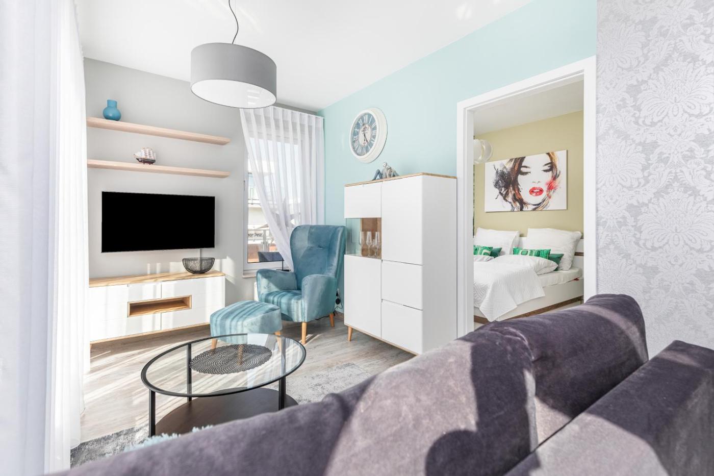Apartament z 1 sypialnią. This apartment comprises 1 living room, 1 separate bedroom and 1 bathroom with a shower and free toiletries. In the well-equipped kitchenette, guests will find a stovetop, a refrigerator, a dishwasher and kitchenware. Featuring a balcony with a quiet street view, this apartment also provides a washing machine and a flat-screen TV. The unit offers 2 beds. Apartament - 4 osobowy. Powierzchnia pokoju ok.: 35 mkw.