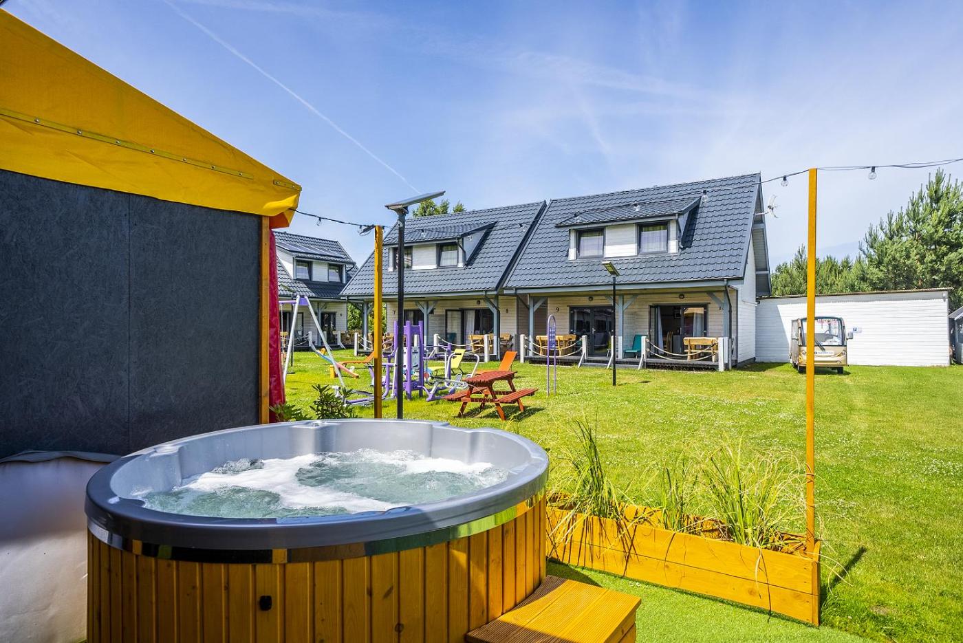 Domek z 2 sypialniami. This chalets special feature is the sauna. Featuring 2 bedrooms, this chalet offers 1 bathroom with a walk-in shower, a seating area and terraceyou can relax. Guests will find a stovetop, a refrigerator, kitchenware and a microwave in the fully equipped kitchenette. The chalet also provides guests with a barbecue. The air-conditioned chalet provides a flat-screen TV, a dining area, an iPad, a wardrobe as well as garden views. The unit has 3 beds. Domek - 6 osobowy. Powierzchnia pokoju ok.: 30 mkw.