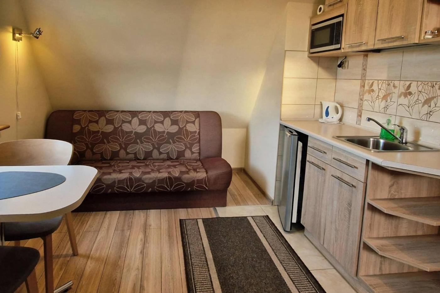 Apartament z 1 sypialnią. This room includes a mezzanine bedroom with a TV. A kitchenette in the studio equipped with a refrigerator and a microwave, allows for the preparation and storage of food. There is a coffee and tea maker in the room. Apartament - 3 osobowy. Powierzchnia pokoju ok.: 25 mkw. ;